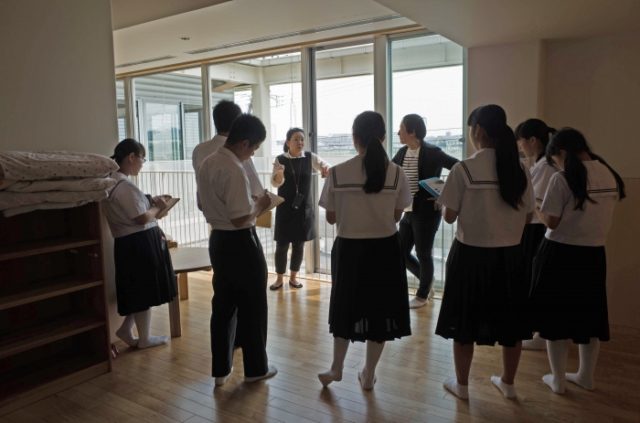 先日愛知県の中学生が、修学旅行の一環として職業見学に来ました。スターチャイルド《新吉田ナーサリー》を案内しながら、図面を開いて建築家の仕事について話したり、生徒さんからの質問に答えたりしました。